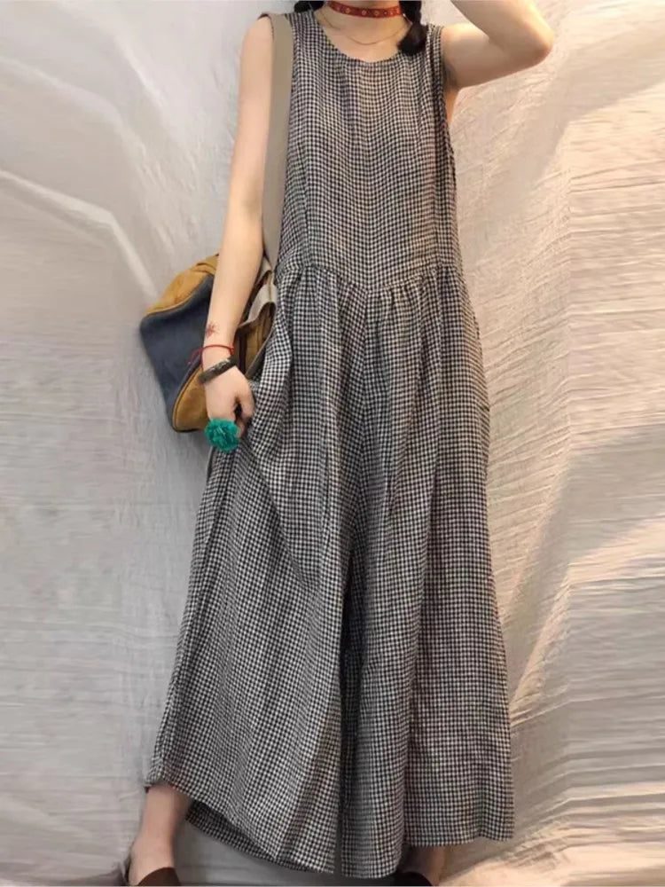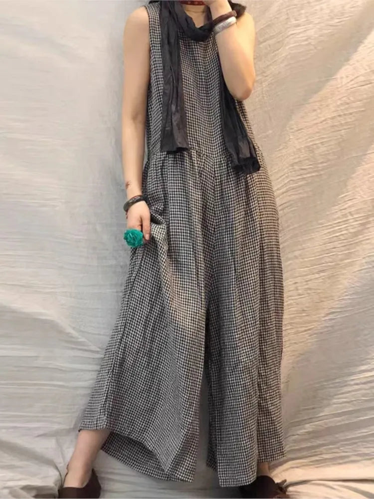 Oversized Plaid Sleeveless Wide Leg Jumpsuit