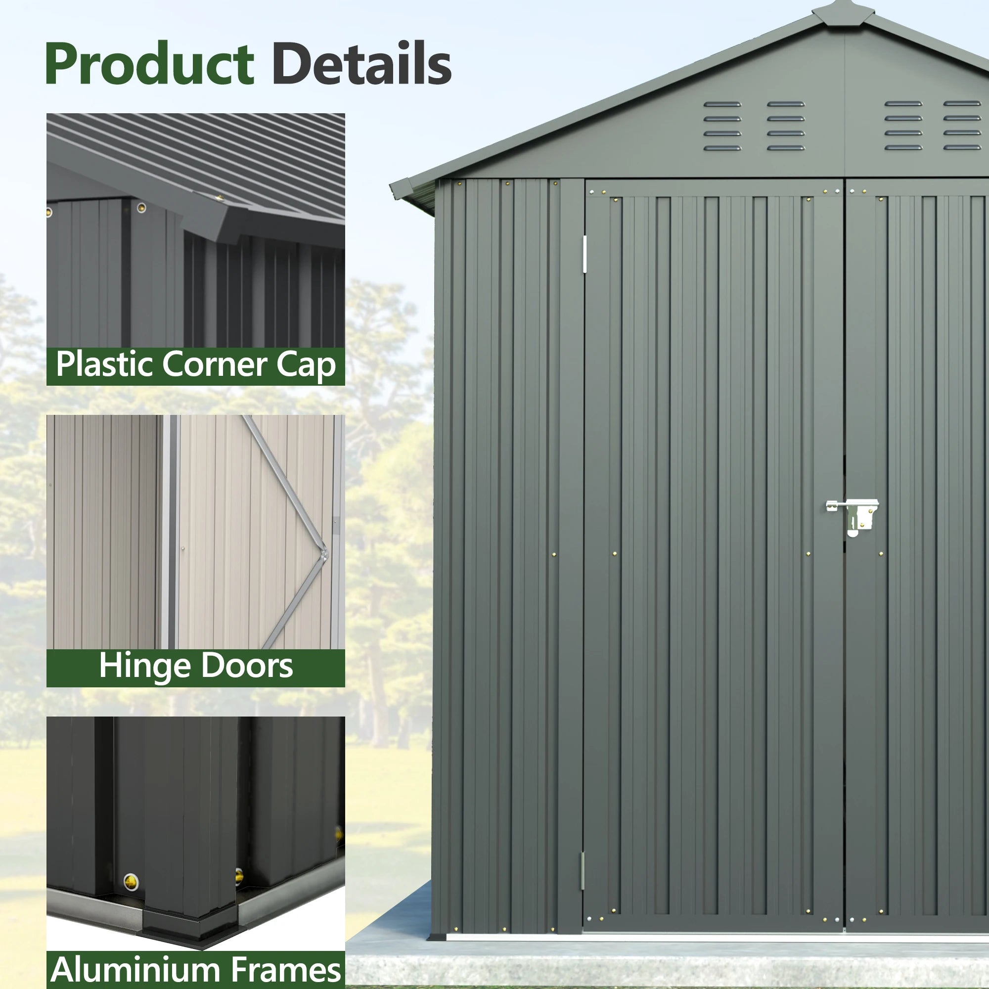 6x6 FT Outdoor Tool Storage Shed with Metal & Lockable Doors