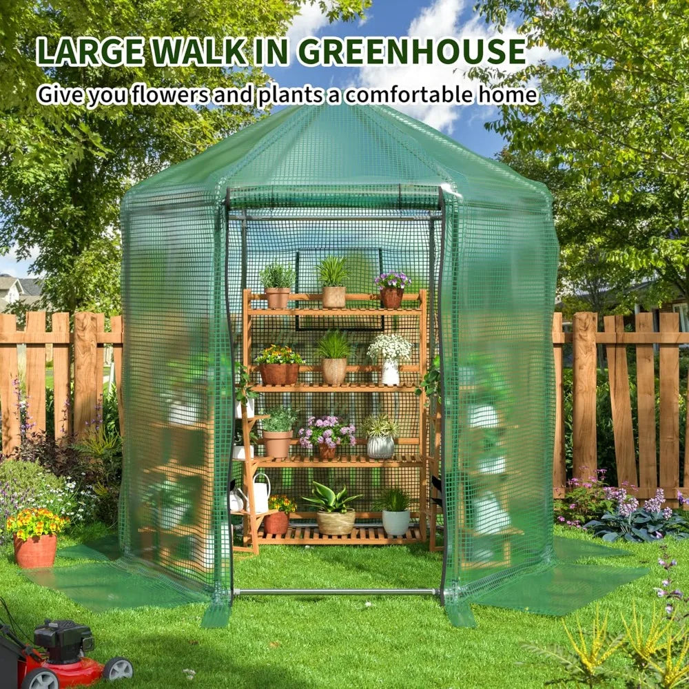 7x7x7.3FT Heavy Duty Metal Walk-in Greenhouse with 180g Double Layer Cover