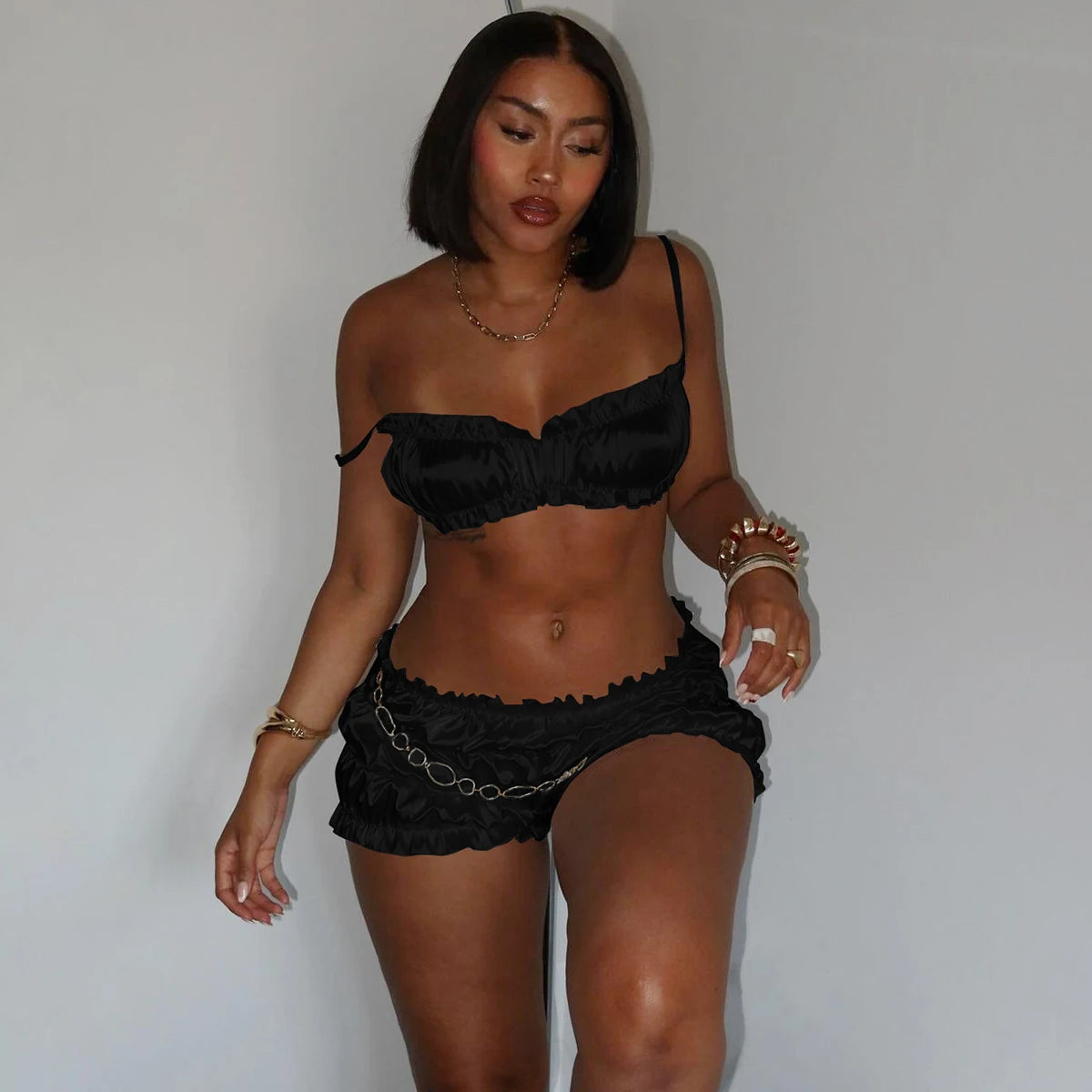 2 Piece Shorts and Sleeveless Strappy Crop Top Set – Arkmis
