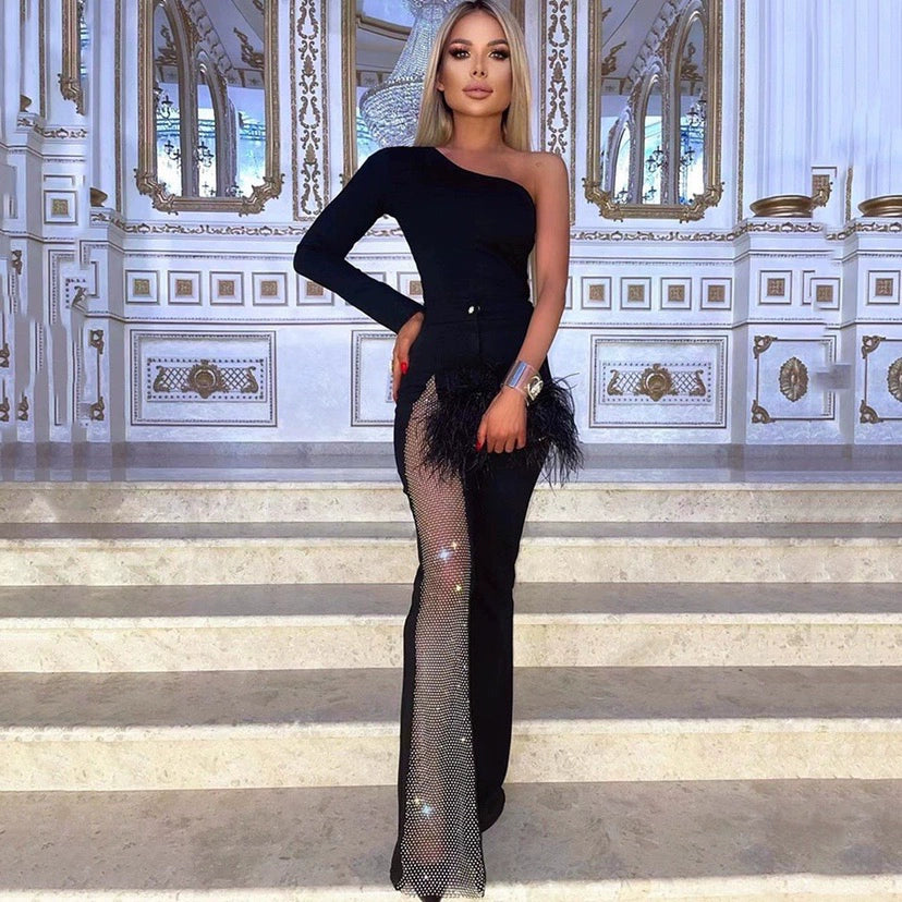 One Shoulder Long Sleeve Black Bandage Jumpsuit – Arkmis