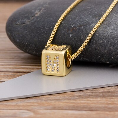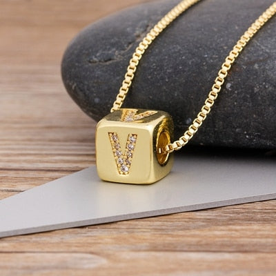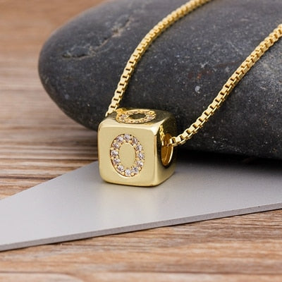 A-Z Initials Micro Pave Copper Cube Letter Pendant Necklace
