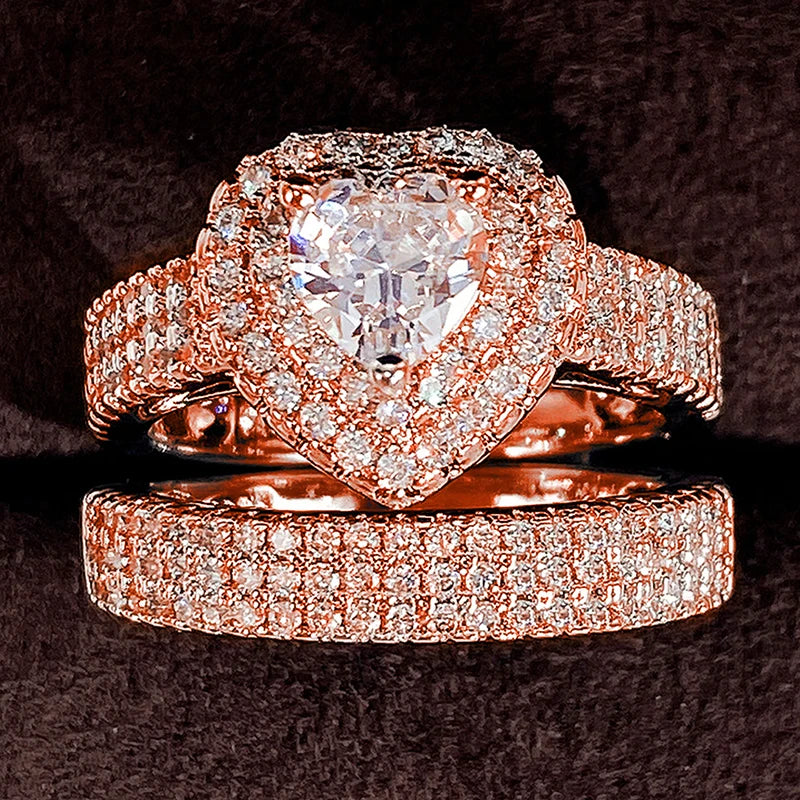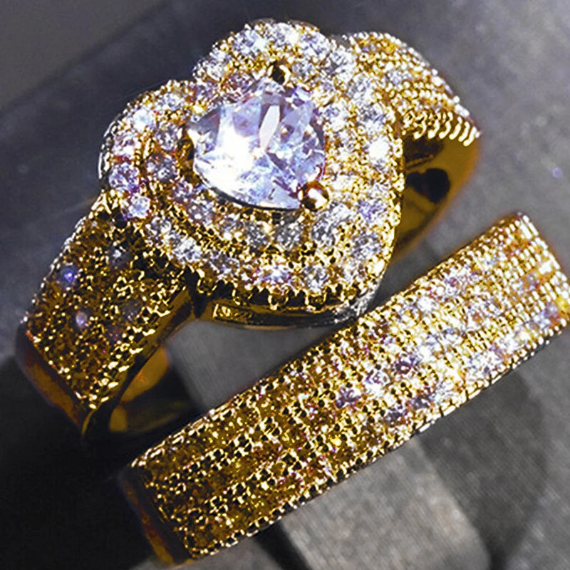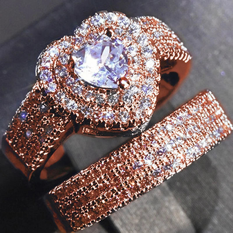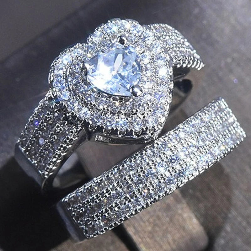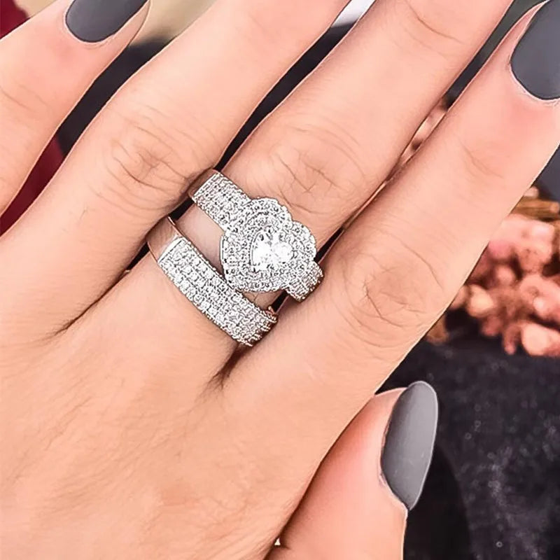 Huitan Eternity Love 2Pcs/Set Cubic Zirconia Heart Rings