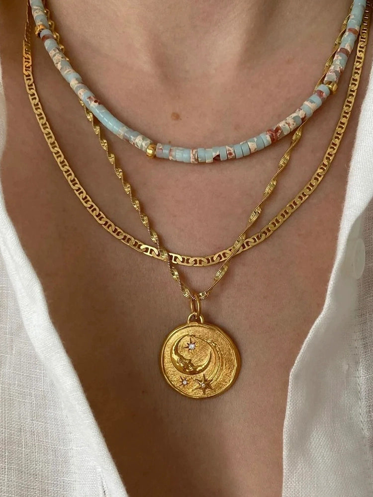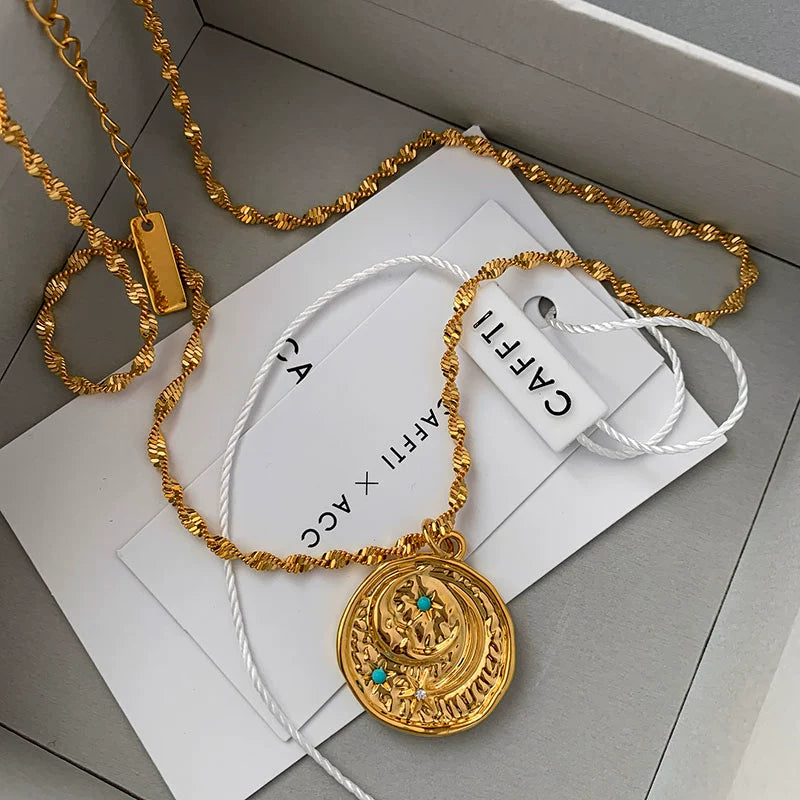 Turquoise Star Moon Coin Necklace